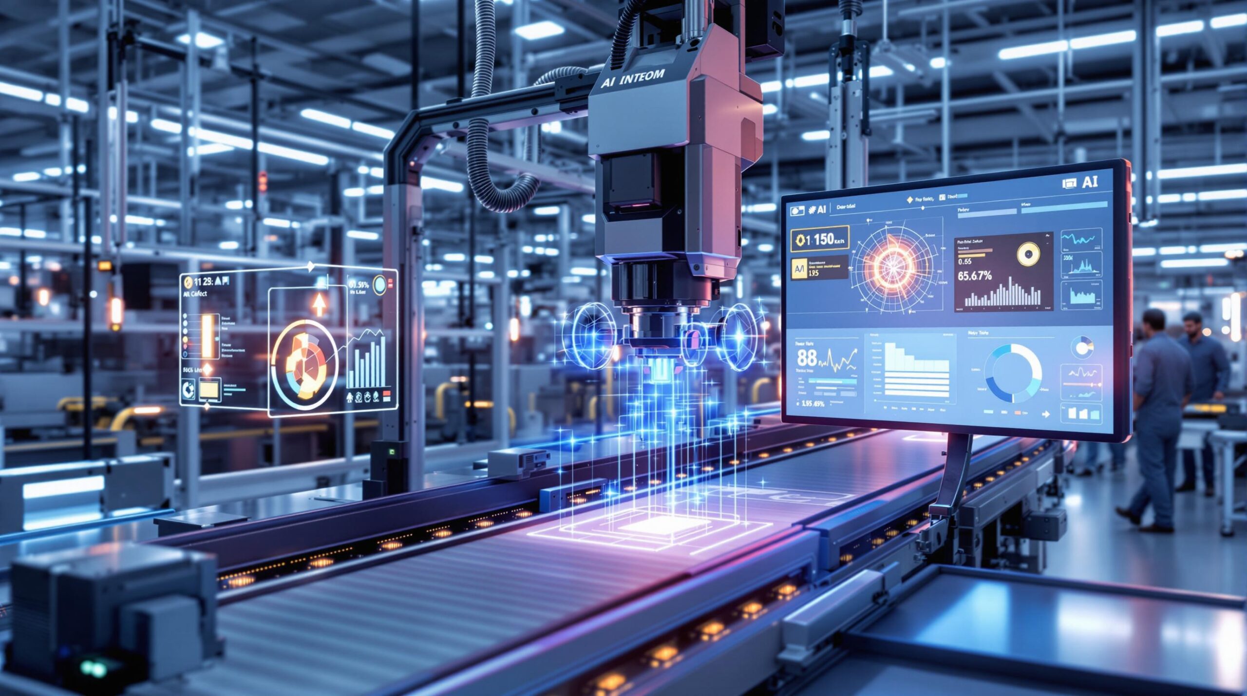 Optimisez votre contrôle qualité avec des solutions basées sur l’IA. Imaginez un système de vision par ordinateur, équipé d’une caméra haute résolution et piloté par une IA, intégré à votre chaîne de production. Chaque pièce est scannée en temps réel, permettant de détecter avec précision les défauts invisibles à l’œil humain.